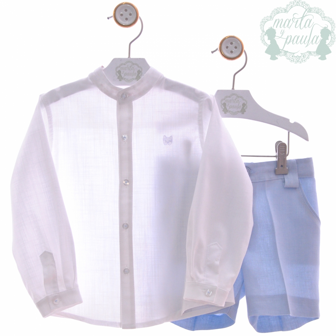 Conjunto camisa e bermuda Marta y Paula em azul céu.