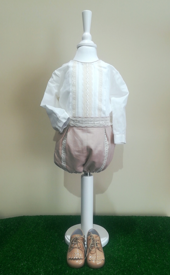Fatinho de batizado composto por camisa e calção.