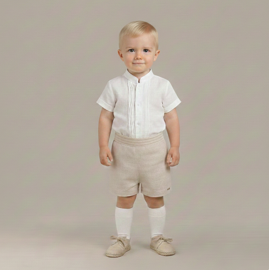 CONJUNTO CALÇÃO E BLUSA EM LINHO BEGE