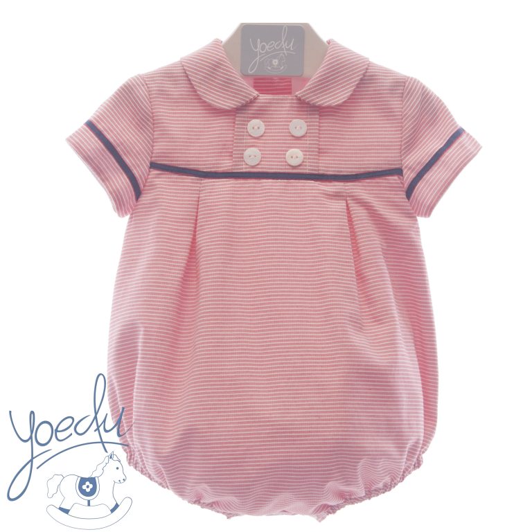 Fofo para bebé em manga curta estampado. n nDe inspiração marinheiro, os seus contraste de cor vermelho e azul assim o remetem. n nDe gola redonda, com botões decorativos na frente. n nAperta nas costas com botões á cor.