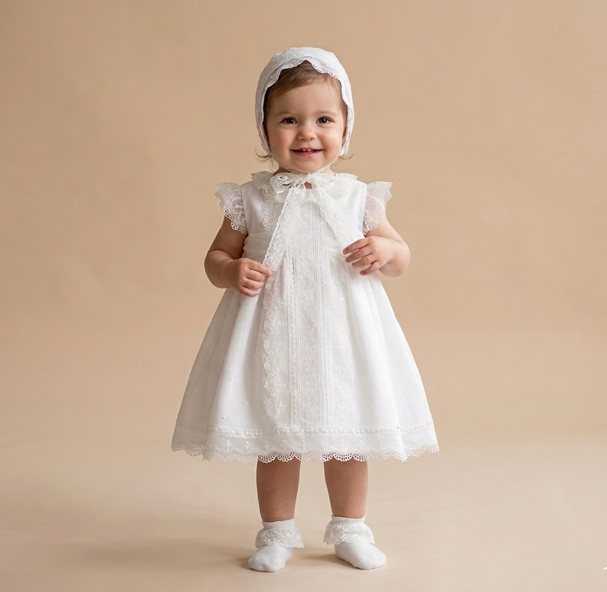 Vestido Batizado Manga Francesa Amaya