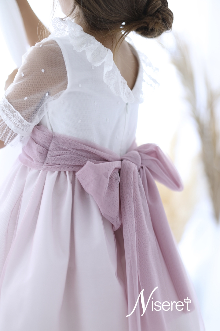 Vestido Disponível em pérola com faixa na cor rosa velho