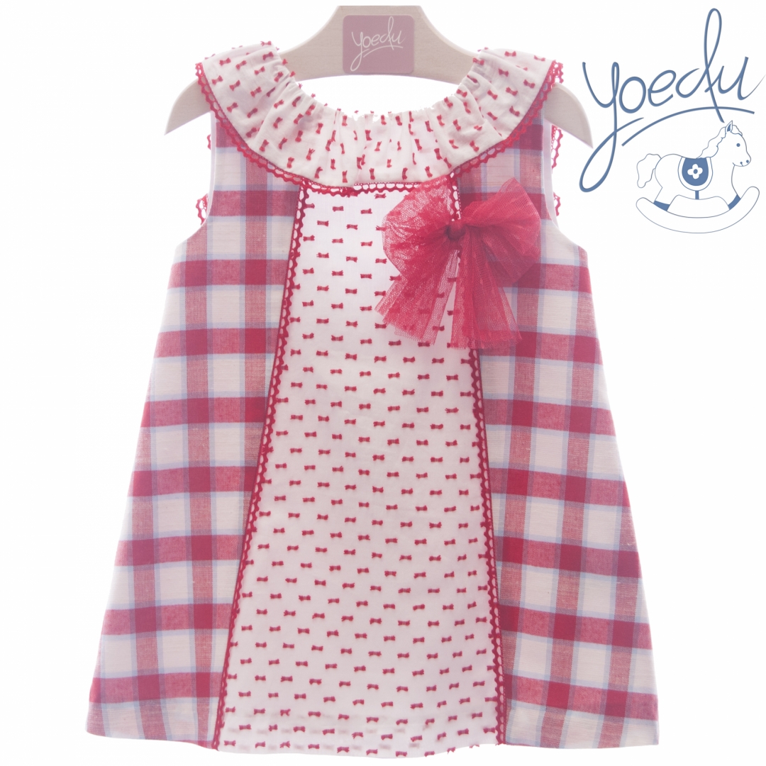 nPadrão de xadrez no restante vestido.